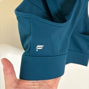 Teal blue with highlighter yellow trim. This bra is intended for medium impact workouts. Bustier-inspired lining to accentuate your best assets and an adjustable back closure for the perfect fit. New without tags. Never worn. NWOT