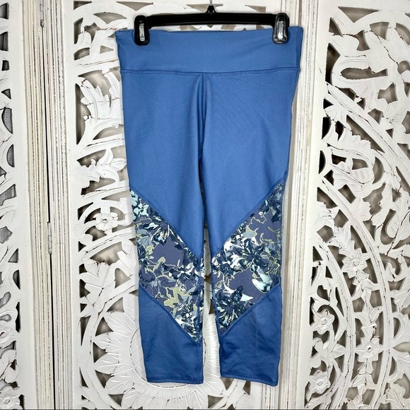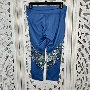 Fabletics Blue Patterned Capri Leggings in excellent condition no flaws. Light blue with patterned patches.