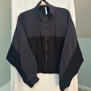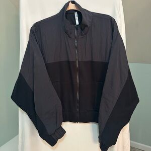 Channel stylish streetwear vibes in this full-zip jacket, featuring a cool mix of textures, voluminous sleeves, breathable lining, and front pockets. This jacket was worn once. No stains or tears.