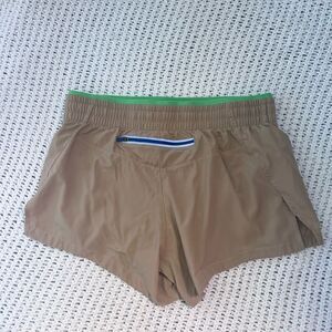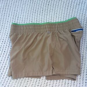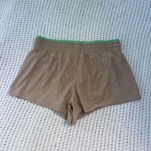 Fabletics Breathe Run Shorts 3'' Tan Green Mid-Rise Running Athletic Training M