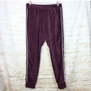 Fabletics Britt Jogger Pants Womens XL Burgundy Velour Gray Side Stripe Zip Leg