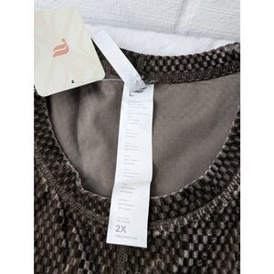 Fabletics Brown Velour Seamed Long Sleeve Top Pullover plus size‎ 2X NWT