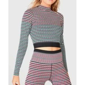 Fabletics Camryn Cropped Top Womens M Houndstooth Seamless Long Sleeve