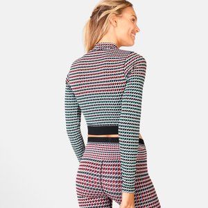 Fabletics Camryn Houndstooth Print Slim Fitted Seamless Cropped Long Sleeve Top