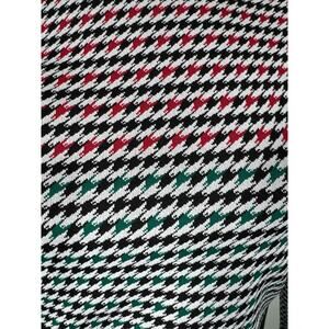Houndstooth pattern in green black and red against a white background