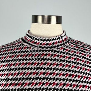 You'll be sure to get checked out in this sleek houndstooth top. The multi-colored design and eye-catching, color-blocked band are just the things for cool-weather chic.