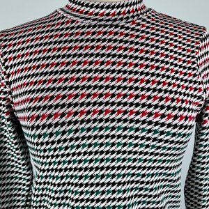 Fabletics Camryn red green houndstooth seamless long sleeve sweater top, size XL / 12-14