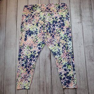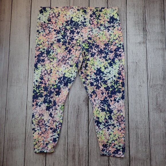 Fabletics Multicolored Floral Print Athletic Capri Leggings Yoga Pants, Women's Size 3x.