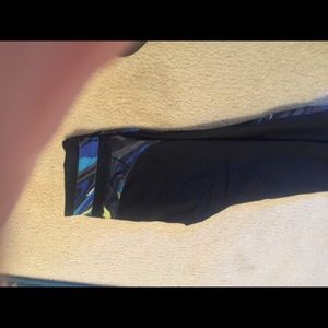 Awesome size small (fits medium size cus runs big) Fabletics attire. They are capris so they stop below the knee. They are very comfy and stylish. Too big for me