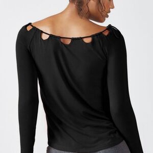 Fabletics Carla Long Sleeve Off Shoulder Scalloped Tie Neck Top XS