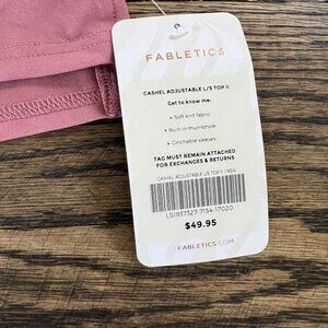 The Fabletics Cashel Adjustable Long Sleeve Performance Top in Pink, size XS, is a stylish and functional activewear top perfect for gym and training workouts. Made by the brand Fabletics, this slim-fit pullover top features a round neckline, adjustable closure, and is machine washable for easy care. The solid pink color adds a pop of color to your workout attire, making it a versatile and comfortable choice for active women looking for a quality performance top.