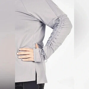 Fabletics | Cashel Adjustable Sleeve Top II Gray Cinch Sleeve Thumbholes
