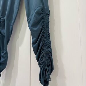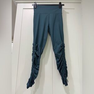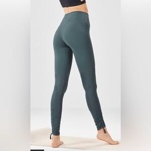 Cinchable high-rise leggings that can also be worn folded over. Crafted from extra-soft, moisture-control fabric and features anti-pilling technology. Color is Amazon. 82% Polyester/18% Spandex.