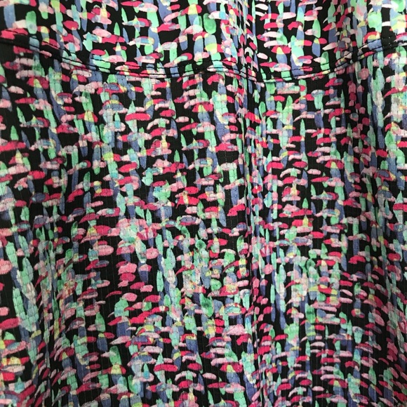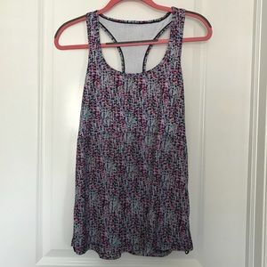 Great tank top for going to the gym or even just everyday use. Fun pattern for the spring and summer. The last picture can really show the pattern the best. Has a lot of bright vibrant colors in it to match a variety of different clothes already in your wardrobe! Has the cute cinchable sides. Purchased in 2017 but only worn a handful of times and in great condition