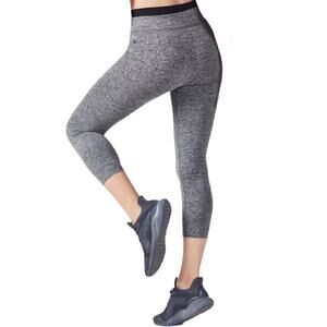 Fabletics Charcoal Heather Gray & Black Seamless Capri Leggings, Size Small