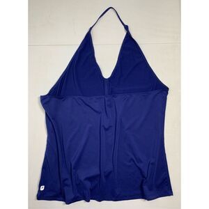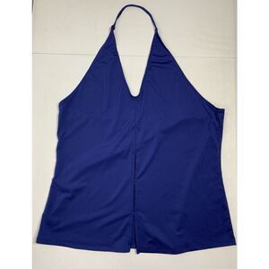 Fabletics Chiara Tank Blue Halter Neck Peekaboo Detail in Front Back Cowl Size M