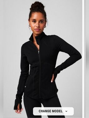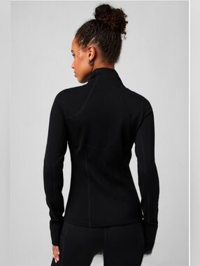 Get out there. no matter the temps. Crafted in our Cold Weather fabric--- with an updated perfect fit warm brushed interior. and sleek, moisture-wicking exterior--this full-zip iacket features a fitted silhouette, thumbholes, and zip pockets for your essentials.