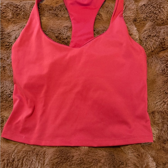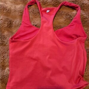 Soft stretch fabric with a scooped neckline. Racerback design for easy movement. Smooth, supportive fit ideal for workouts or casual wear.