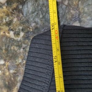 Cotton/elastane ribbed knit high neck built in bra tank. NWT. Size XL. Measures are unstretched and approx. Please see chart.