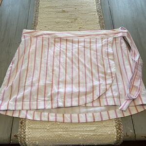 Fabletics Cotton Voile Wrap Skirt Sarong Coverup White Pink Orange Stripe Sz 1X