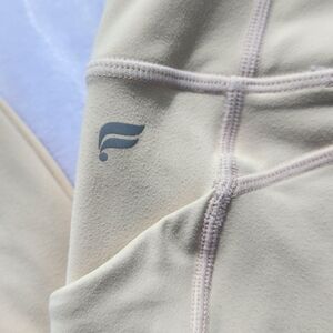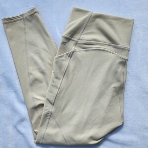 Stylish cream high-waisted leggings. Perfect for workouts or casual wear.