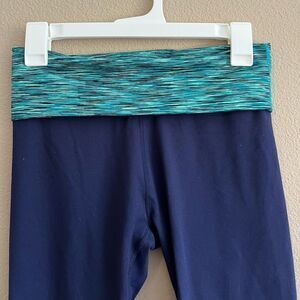 Green and navy cropped leggings by Fabletics! Fold over band. Size XS. In great condition!