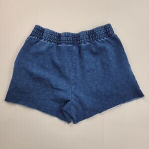 Fabletics Cut Off Lounge Shorts Size Medium Blue Stretch Waist Pockets Raw Hem
