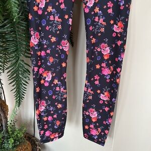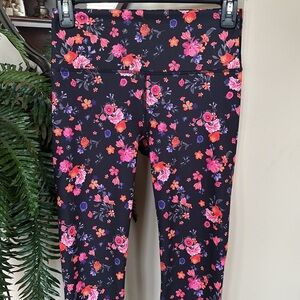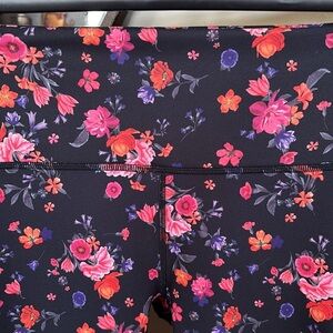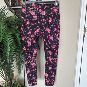 Fabletics Define High Waisted Floral Pure Luxe Black Pink Floral 7/8 Leggings.