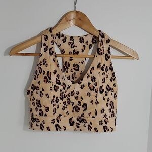 Fabletics Desert Leopard On-The-Go Midi Medium Impact Sports Bra / Crop top