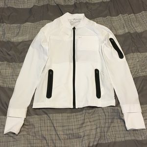It says size ss/2 in the tag. New with tag. I notice there's some transfer from the zipper to the inside of the jacket, see pic 4. Bust 16 in flat. Waist 16 in flat. Sleeve approx 23 in.