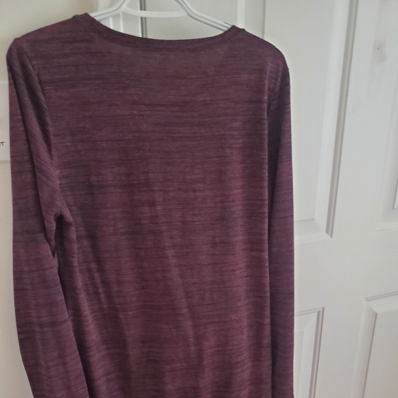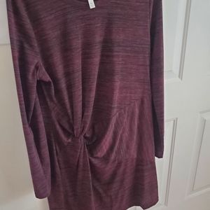 Casual, side twist, comfortable dress of a jersey material. Throw it on, pair with boots or flat shoes and walk out the door. Never worn. Very cute. Color is burgandy and in picture is accurate.