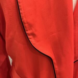 Elevate your loungewear game with this Fabletics Ecostain Women's Robe in size S and stunning red color. The robe features a collared neckline, long sleeves, and a tie closure for a comfortable and classic look. Its satin fabric type and belted features make it a perfect addition to your wardrobe for any season, whether it's winter, summer, fall, or spring.