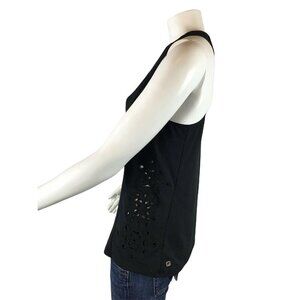 Fabletics Eiffel Tank Top Womens Size Medium Racerback Stretch Embroidered Black