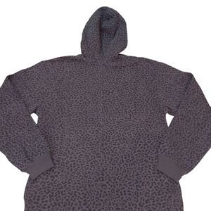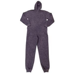 Fabletics Fleece Hooded Onesie Jumpsuit Womens Small Purple Black Leopard Print