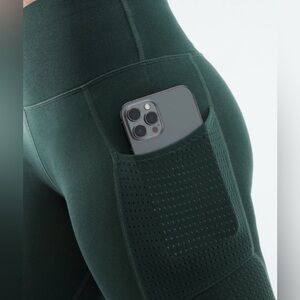 🆕Fabletics Forest Green High Waisted Sculptknit Pocket Biker Shorts L🆕