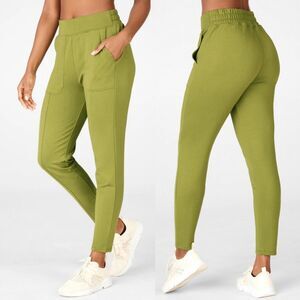 Cute Fabletics "Gemma" high rise joggers! Unique bright olive color with a tapered leg. Gently worn, has a few tiny snags to pocket. Size XS