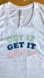 Need some motivation while working out? This muscle tank from Fabletics will do the trick! ๐ It says โGET IT GET IT GET ITโ in multi-colored graphic block font on the front! Super cute. Fresh, crisp white. ๐ From Fabletics.