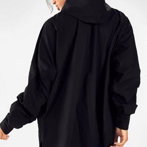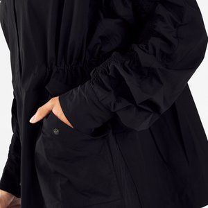 Made of water-resistant fabric, our laminated jacket both flatters (thanks to a waist drawcord) and helps protect from the elements.