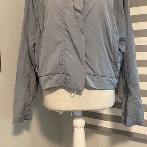 Fabletics Gray Lightweight Hooded Cropped Rain Jacket Size Large