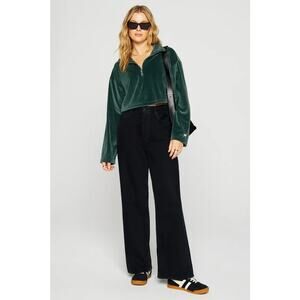 Fabletics Green Plush Ribbed Velour Cropped Half Zip Pullover Sweatshirt