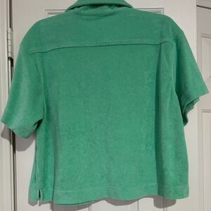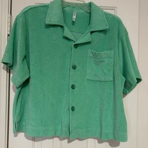 Fabletics Green Terrycloth Boxy Button Down Shirt Size M Athleisure ~ Spring!