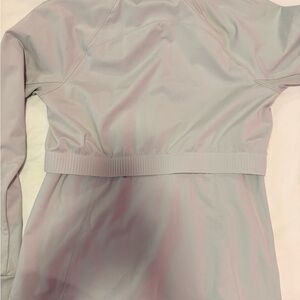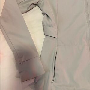 Grey, since waist design, pocket on the back, thumb holes, size L