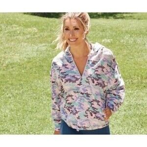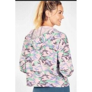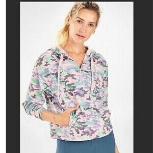 Fabletics Hallie Cinchable Camo Boxy Relaxed Fit Half Zip Hoodie Sweatshirt