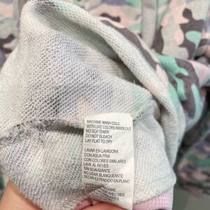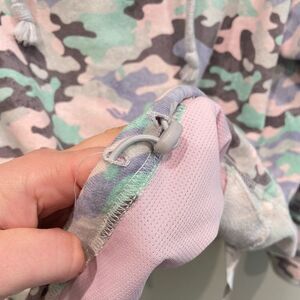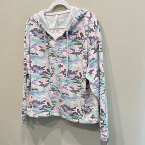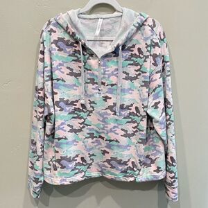 Fabletics Hallie Cinchable Half Zip Hoodie Pullover Sweatshirt in Washed Real Teal Camo