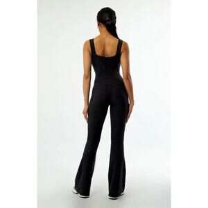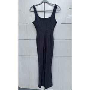 Fabletics Heatherflex Kick Flare Jumpsuit In Charcoal Sz M Square Neck Build In