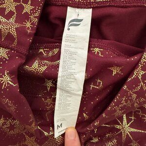 Fabletics High Rise Maroon Powerhold Gold Celestial Print Biker Shorts-Medium