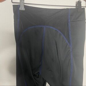 Clean preowned condition size small Fabletics High waisted full length Spin pants. Black with blue stitching, mesh bottoms and zips at ankle. No pilling, super clean. Tiny pull on top of zipper on left ankle, zipper tested and still functional, see photo. 26" inseam.