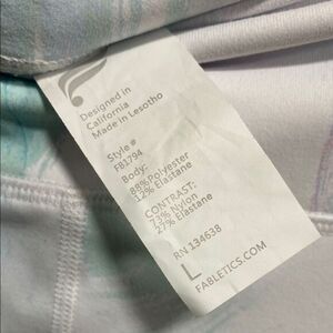 fabletics leggings, pastel print, high rise 7/8 leggings, abstract yoga pants, soft white activewear, women’s large, athleisure style