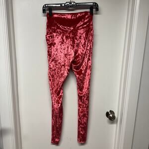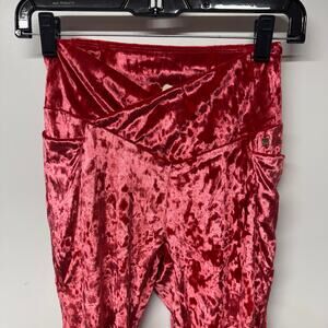 Fabletics High Waisted Crushed Velour Cross Over Leggings Strawberry Red Small