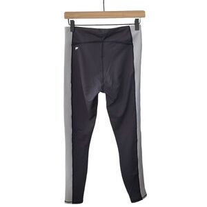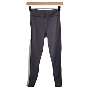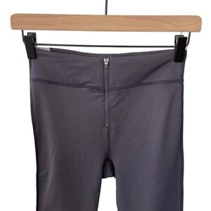 Fabletics High Waisted Leggings with Zipper Gray Purple Front Zipper